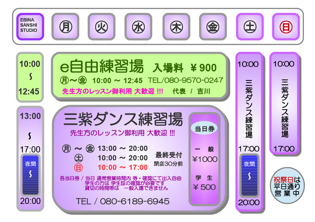 土曜・日曜のみ イベントのため全日貸切の場合があります。2ケ月前までにお知らせします。